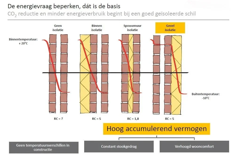 Omdat de isolatie doorloopt vanaf het maaiveld tot onder de begane-grondvloer, is de gevel volledig ingepakt.