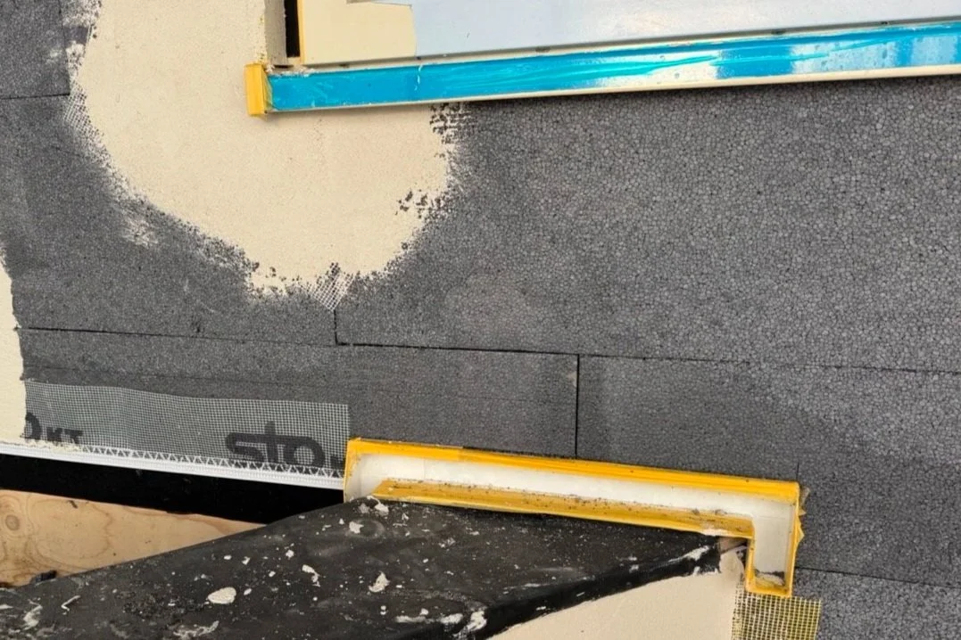 We reinigen de gevel, verwijderen algen en herstellen scheuren of beschadigingen waar nodig.Plaatsing van de isolatie